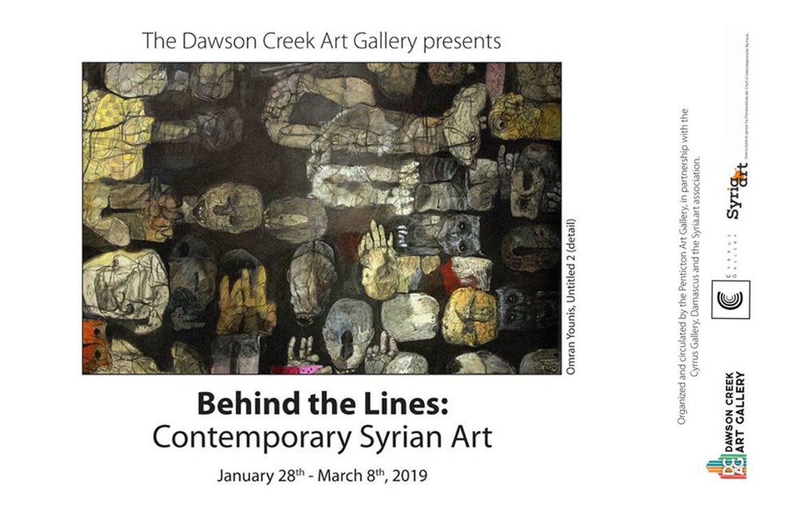 BEHIND THE LINES: CONTEMPORARY SYRIAN ART est une exposition itinérante à travers le Canada. L’exposition héberge 20 artistes syriens avec environ 100 œuvres de multiples média, y compris vidéo, photographie, peinture et sculpture.