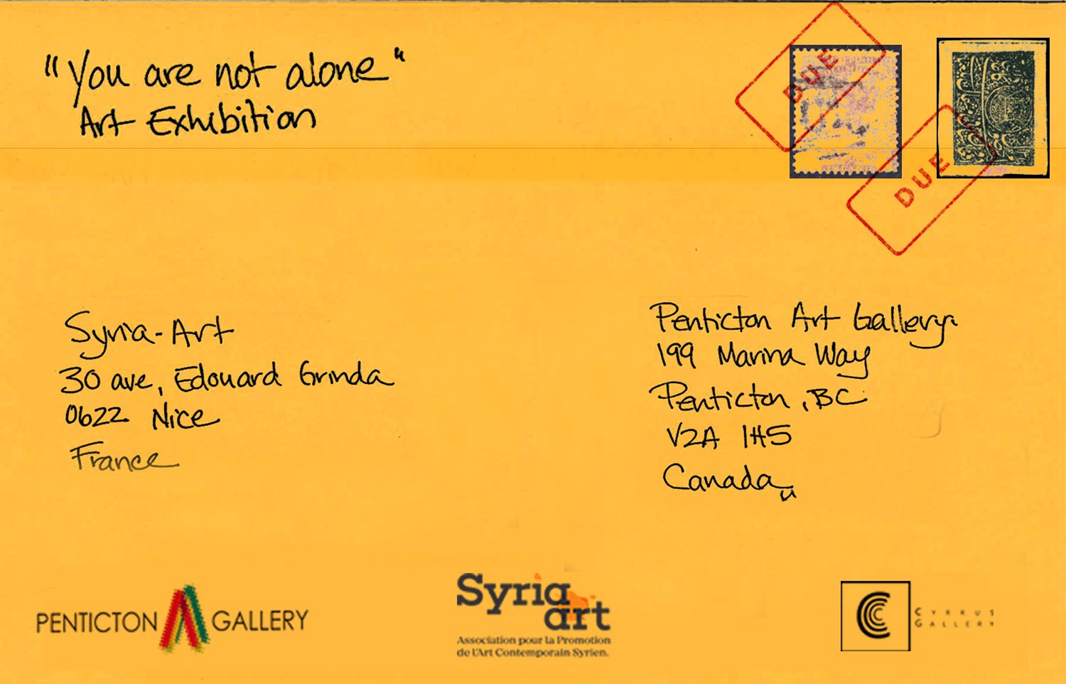 Pendant cette période de confinement, la Penticton Art Gallery (Penticton, BC, Canada) en partenariat avec l’association SYRIA.ART (Nice / Berlin), invite des artistes du monde entier à participer à une exposition d’art sans précédent intitulée : You Are Not Alone.