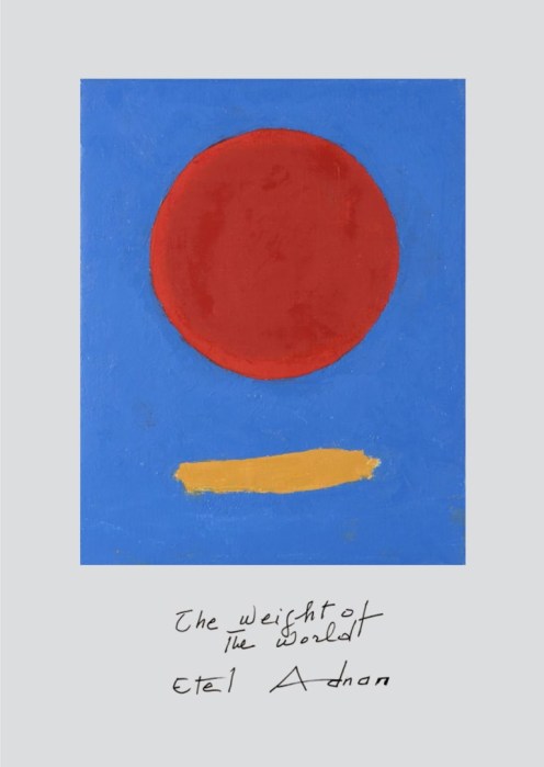 Adnan, que le conservateur polymathique Hans Ulrich Obrist célébrait comme l’une des artistes les plus influentes du siècle dernier, est née à Beyrouth d’une mère grecque et d’un père syrien. Elle commença à écrire de la poésie en français à l’âge de vingt ans et étudia la philosophie à la Sorbonne, une génération après celle de Simone de Beauvoir, puis traversa l’Atlantique pour poursuivre des études supérieures à Harvard et Berkeley. Dans les années 1960, Adnan fut enseignante dans une petite école catholique en Californie, où elle commença à peindre et à transcrire l’œuvre des poètes arabes. Elle retourna à Beyrouth, et au milieu de la guerre civile libanaise, composa une poésie et une prose politiquement branchées, qui fustigea l’imagination populaire d’une précision inédite de perspicacité. Adnan vit aujourd’hui à Paris avec sa partenaire, l’artiste et éditrice Simone Fattal, née en Syrie, où elle continue à peindre et à écrire.
