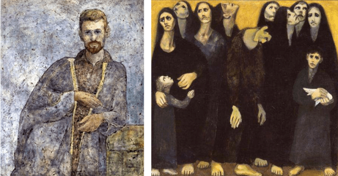Ces conditions sociales et politiques étaient traduites et représentées par la déformation des corps et la discordance entre la tête et le corps, – les têtes surchargées de pensées et les épaules incapables de supporter la lourdeur des émotions.