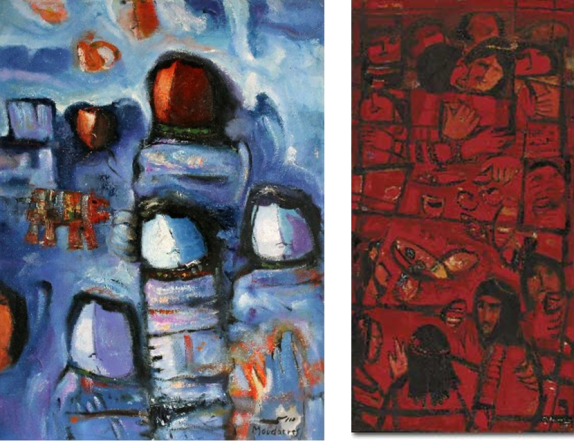 Fateh Al Moudaress (1922-1999) : peintre, musicien, écrivain et poète, il était le leader du mouvement d’Art moderne en Syrie. Initialement autodidacte, Al Moudarres a étudié plus tard à l’Accademia di Belle Arti à Rome, où il a été influencé par le Surréalisme. Il est considéré comme l’artiste le plus renommé et distingué parmi tous, et celui qui a été capable d’exporter l’art syrien en dehors de la Syrie (il a vendu environ 300 œuvres en Europe en quelques années).