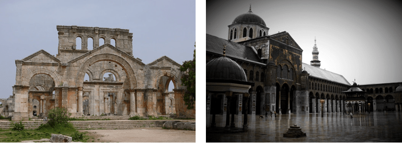 Des églises comme « Saint-Siméon le Stylite » sont la référence d’architecture pour toutes les églises byzantines, et la mosquée des Omeyyades à Damas est l’archétype de toutes les mosquées du monde jusqu’à nos jours.