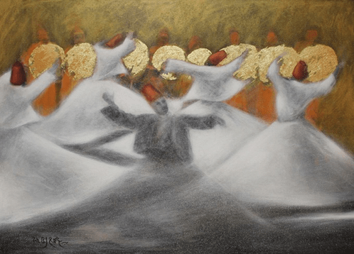 De plus en plus, nous assistons à l’essor d’une direction artistique qui insiste sur la culture et les traditions de la Syrie, comme un appel à tous les Syriens à reconsidérer leur pays et leur société d’une manière plus positive ou à réaffirmer leur identité. Soufisme et Derviches tourneurs sont des sujets récurrents pour de nombreux artistes, ces pratiques restent un symbole de spiritualité pacifique et de tradition respectable, et les utiliser est une réponse à la violence et ses prétextes.