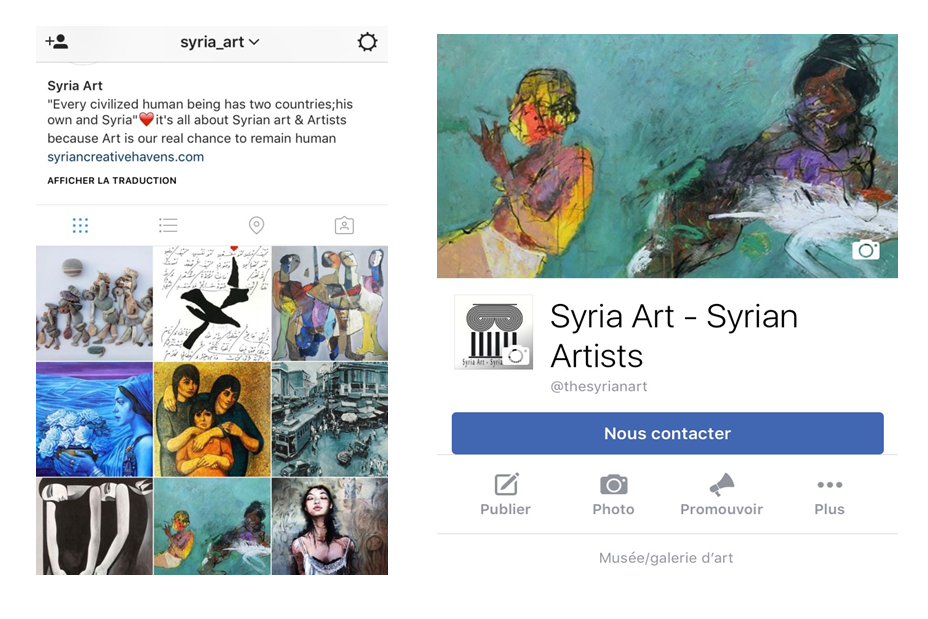 Il existe de nombreux artistes syriens et amateurs d’art en Syrie ou issus de la Diaspora internationale, – comportant des personnes de toutes les classes sociales et de tous milieux socio-économiques et vivant principalement entre l’Europe et le Moyen-Orient -, qui ont créé des communautés telles que notre association à but non lucratif « SYRIA.ART – Association pour la Promotion de l’art Contemporain Syrien », ainsi que notre page connexe « Syria.Art », qui est devenue une sorte d’archives ou encyclopédie pour l’art syrien et les artistes syriens. « SYRIA.ART » est délibérément neutre, a-religieux, apolitique et dénué de toute considération idéologique ou ethnique.